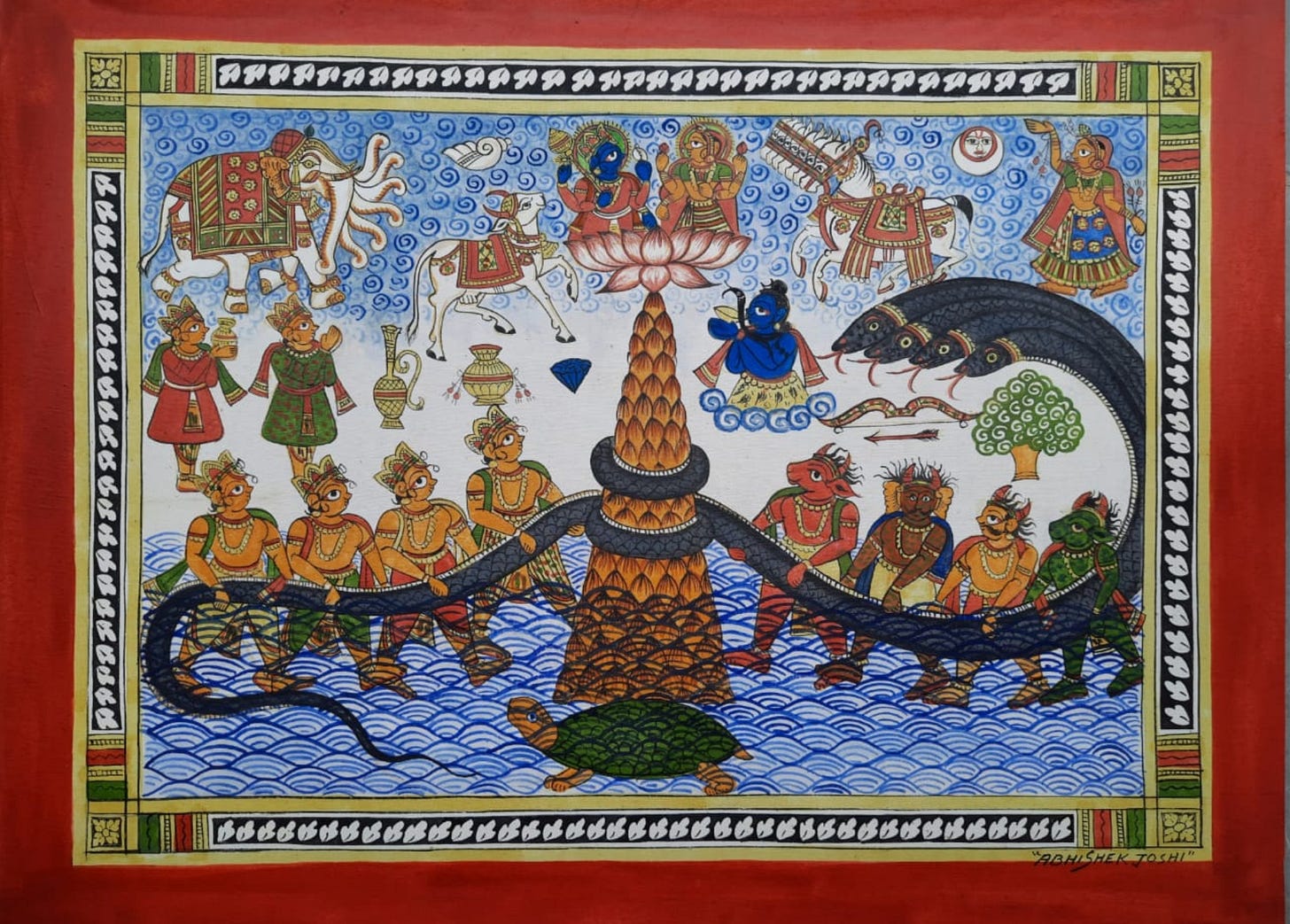 மாசுணம் சுலாய் நெருங்க: வாசுகி என்ற பெரும் பாம்பே கடையும்போது கயிராக இருந்தது. அதை, அழுத்தமாக், நெருக்கமாக, மந்தர மலையின்மேல் சுற்றினார்கள்